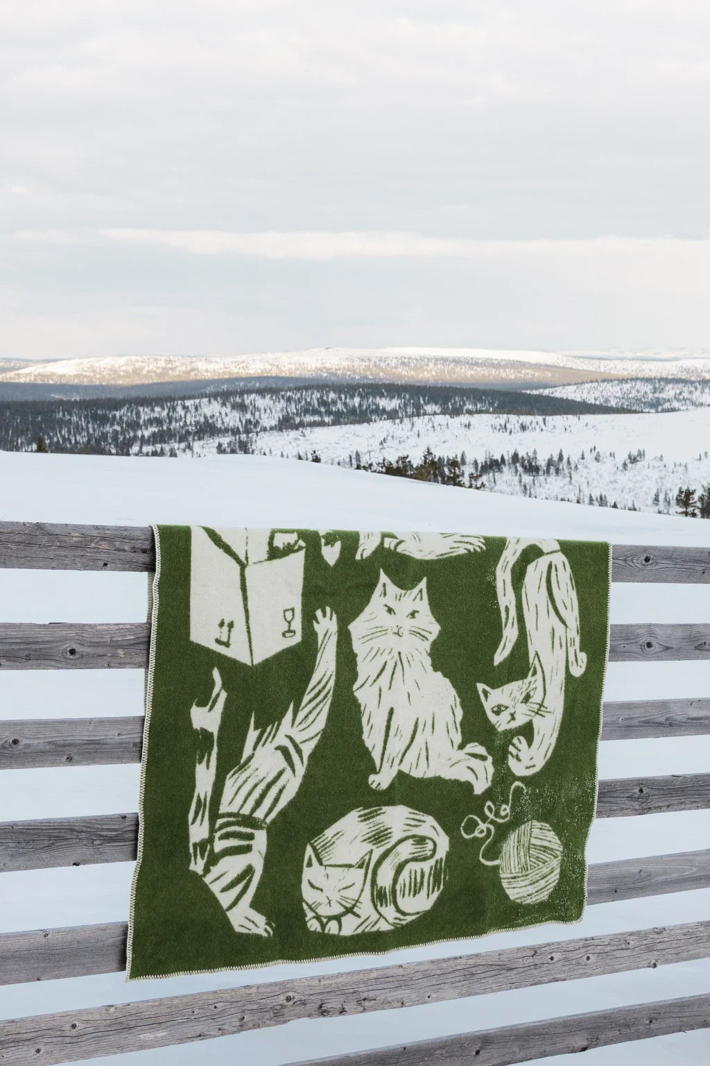 The KISSANPÄIVÄT blanket features original artwork by Matti Pikkujämsä. Crafted to be exceptionally soft and gentle against the skin, it offers a cozy experience perfect for curling up on the sofa. This blanket also makes an ideal gift for adults, particularly cat enthusiasts who will appreciate its unique design and comfort.