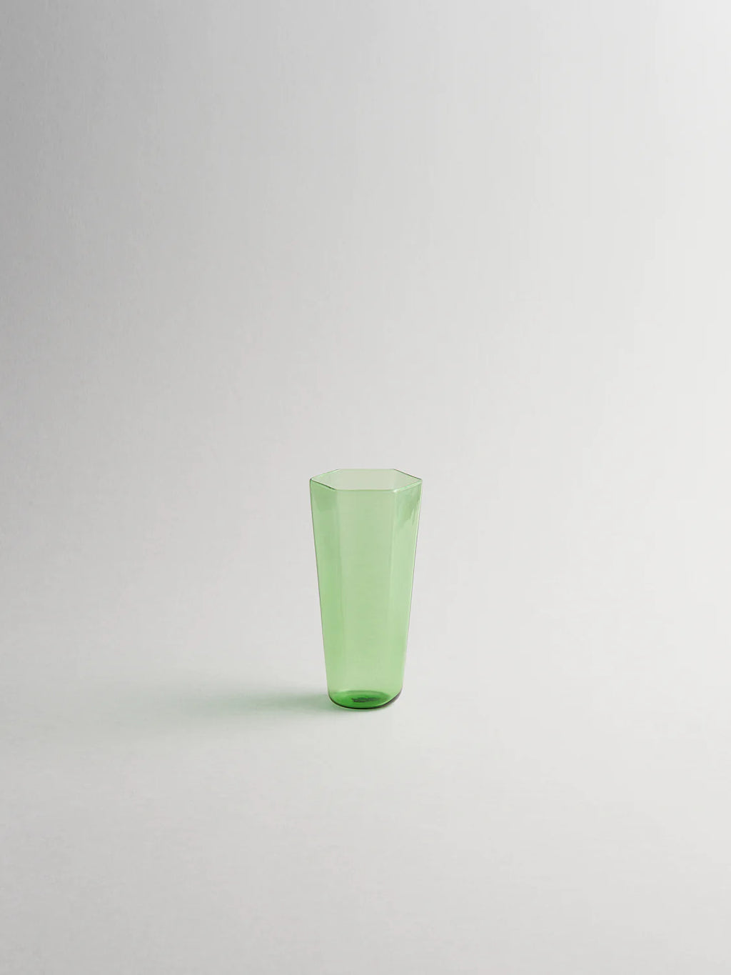 This piece of glassware is crafted from Borosilicate glass known for its pure and resistant quality, shaped with traditional mouth blowing technique; the innovation of design comes from modern shapes inspired by aesthetics of rationalist and modernist architecture whilst respecting its functionality. The result gives each piece a simple elegance.
