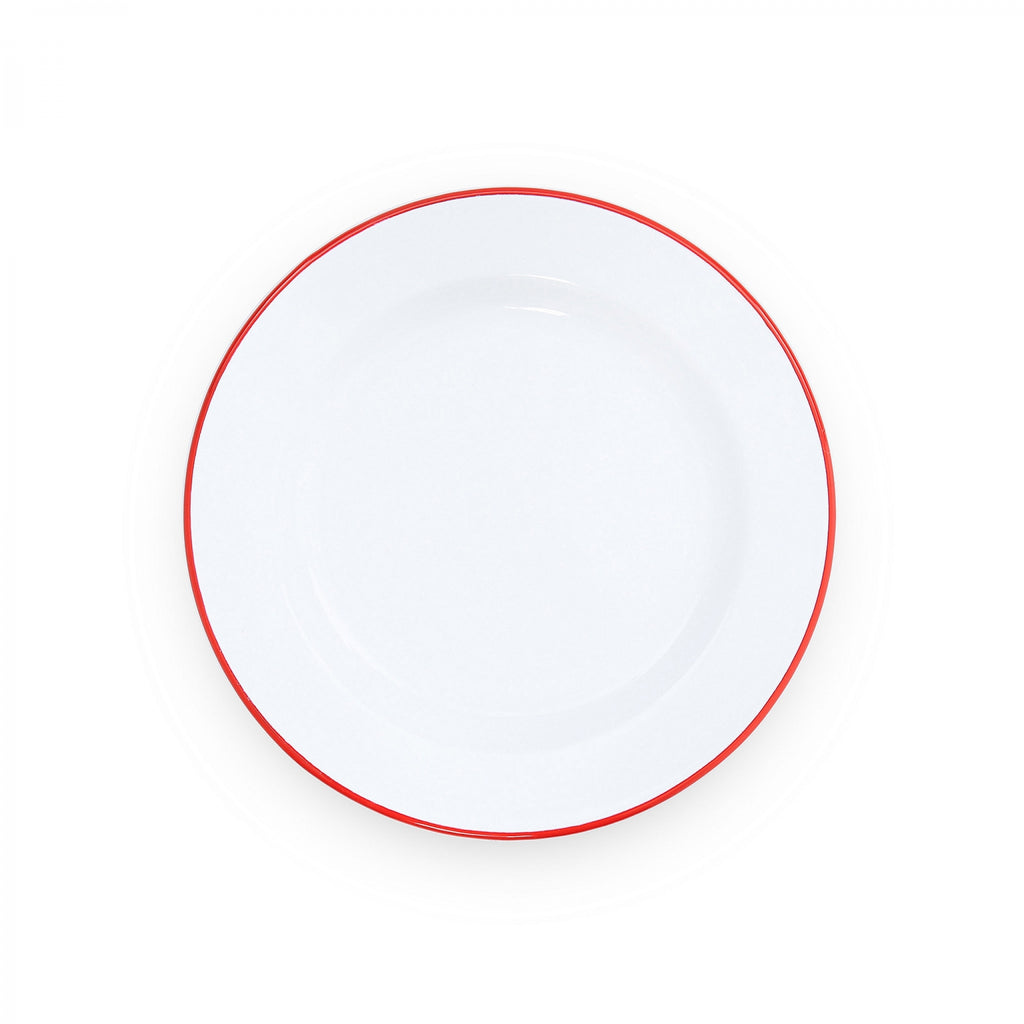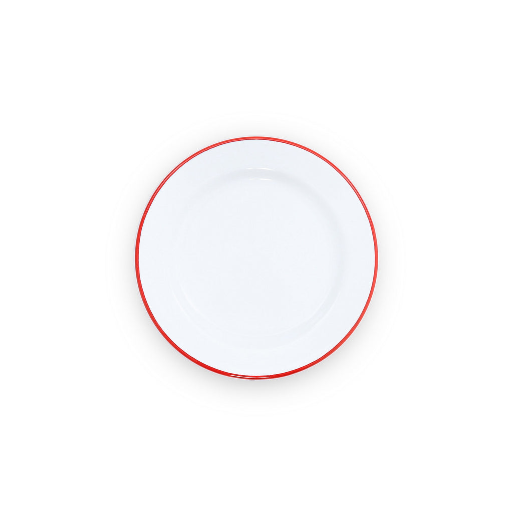 The vibrant rim on our flat salad plates adds cheer to any tabletop. The perfect size for serving appetizers, desserts and great for kids too. The shatterproof enamelware will go anywhere you go.
