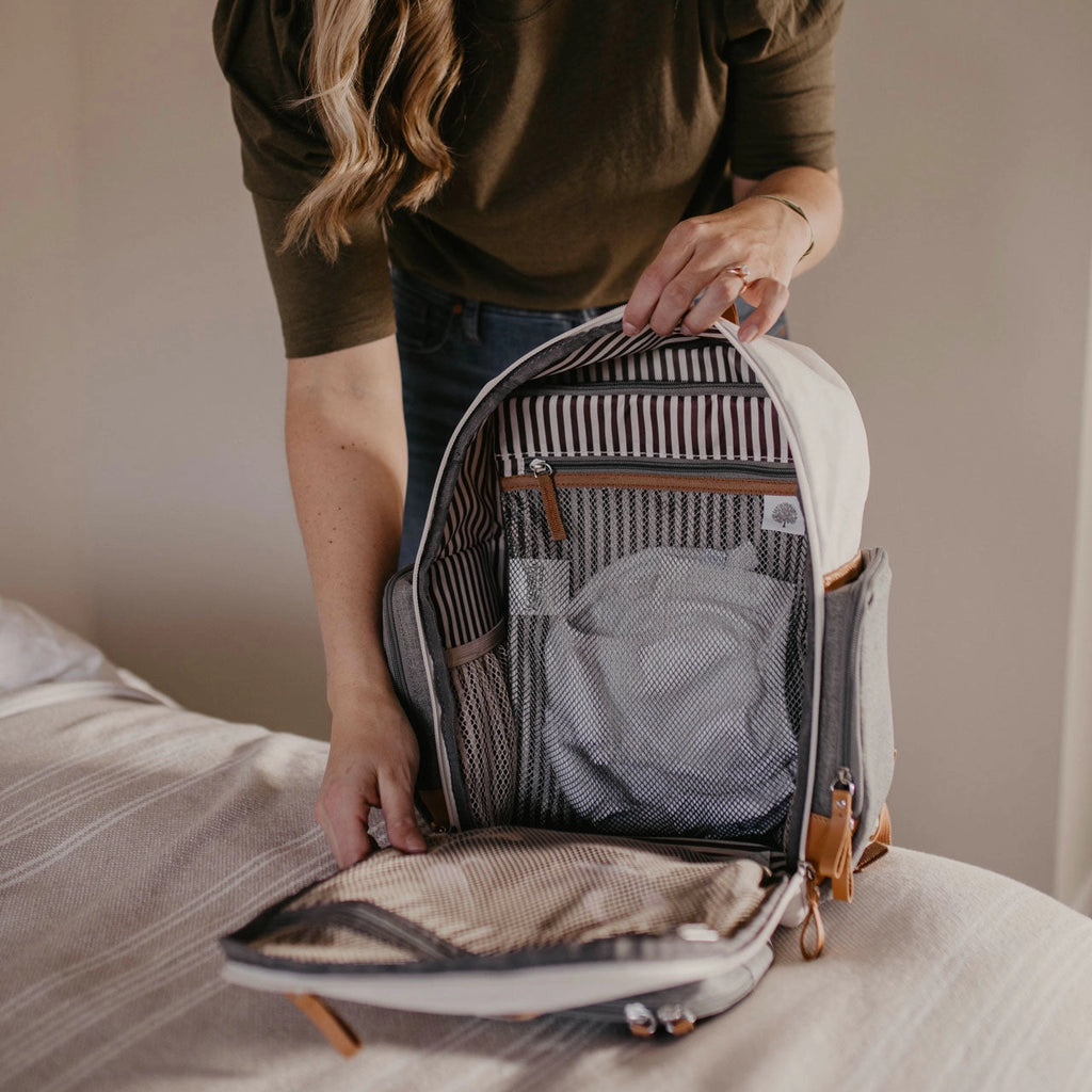 Messes happen, and if anyone knows that, it's moms. Our Wet Dry Bag is wipeable with a waterproof main compartment, so messes don’t spread through the diaper bag. A mesh outer pocket provides extra separation for items to air out. When your customers get home, they can throw the Wet Dry Bag in the wash for hands-free cleanup.