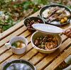 It is a good size for curry and pasta. High-quality techniques have been used to create a thin finish on the edge, making it suitable not only for outdoor use but also for everyday indoor use. Enamelware provides excellent heat resistance and durability, while also being odor-resistant and easy to clean, making it ideal for outdoor activities. The use of stainless steel as the base material makes it thin and lightweight.
